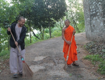 Làm sạch cảnh chùa - Việc làm nhỏ, phước báu lớn