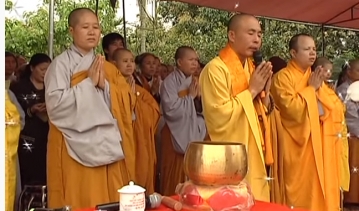 Đại đức Thích Thanh Cường cử hành nghi thức tiếp linh