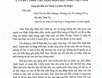 Thông điệp Đại lễ Phật đản PL.2568 của Đức Pháp chủ GHPGVN