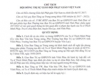 Thi hành kỷ luật, miễn nhiệm toàn bộ chức danh với trụ trì Chùa Biện Sơn