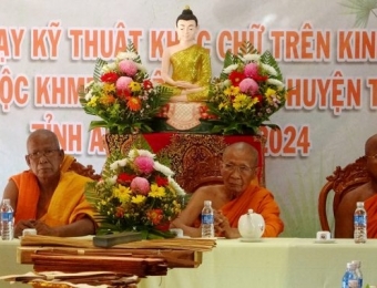 Truyền dạy kỹ năng khắc chữ trên lá buông cho đồng bào Khmer