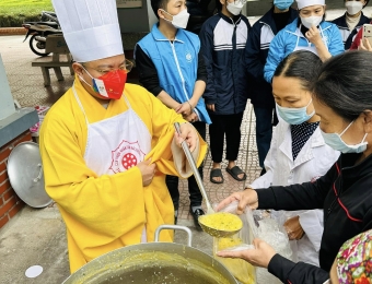 Phát cháo từ thiện tại tầng 1 khu nhà A bệnh viện đa khoa tỉnh Hải Dương ngày 08/01/2023